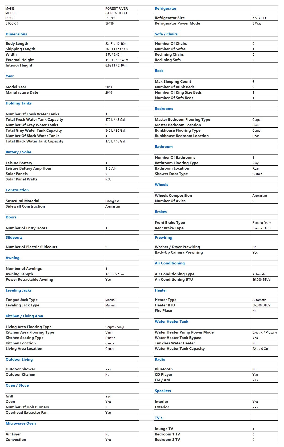 Forest River Sierra 303BH